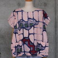 有松絞りのTブラウス フリーサイズ フレンチ袖 着物リメイク