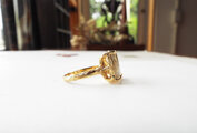 リングのモチーフ部が指(肌)から離れることで、石そのものの色合いを楽しみつつも肌の上に浮かぶように見える樹状模様も楽しめます。