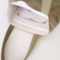 落ち着いたカーキカラーが、ナチュラルでありながらも大人っぽい印象に。