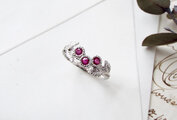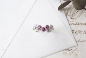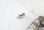 ティアラのように並んだルースをピンと伸びた葉で装飾を施し、すみずみまで植物の造形を模し彩っています。細めのリングと重ね付けしてもとても繊細なコーディネートになるでしょう。