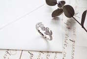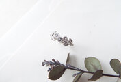 ティアラのように並んだルースをピンと伸びた葉で装飾を施し、すみずみまで植物の造形を模し彩っています。細めのリングと重ね付けしてもとても繊細なコーディネートになるでしょう。