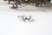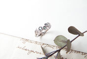 ティアラのように並んだルースをピンと伸びた葉で装飾を施し、すみずみまで植物の造形を模し彩っています。細めのリングと重ね付けしてもとても繊細なコーディネートになるでしょう。