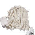 夏の定番!エアリー麻のブラウス 小花プリント 超ゆったりシルエット ベージュ 250801-2