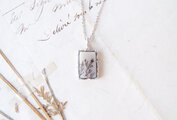 樹木のように見えるのが特徴の「デンドリティックアゲート」を、「身に着ける植物標本」のイメージでネックレスにしました。