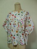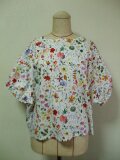 リバティタナローンのフローラル・イブ(Floral Eve)の生地で制作いたしました、ラウンドネック、ラグラン切替え5丈袖のプルオーバーのです♪袖口ゴム入りのデザインです♪