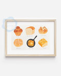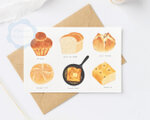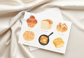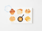 ブリオッシュ、フォカッチャ、食パンやフレンチトーストなど、色々なパンを色鉛筆タッチで描きました ポストカード「3枚セット」です