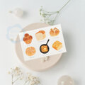 苺タルトとトーストいろいろとパンかごのカード、どれもかわいくておいしそう! ギフト仕様にして下さりありがとうございました♪ 食いしん坊の友だちにプレゼントするのが今から楽しみです♪