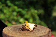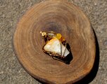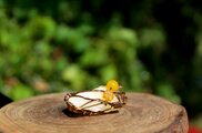 アンティークゴールドのワイヤーで巻いて、シトリンとイエローアゲートのビーズを付けました。