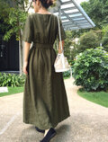 日常にもお出かけにも使える万能ワンピース麻のワンピース お洒落な大人のカーキリネン マキシワンピース