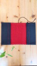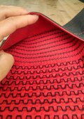 裏地は 少しくすんだ濃い赤色です 。刺し子は黒の糸です。