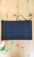 表地は黒色で、かなり粗目の雰囲気のある麻布です。暑い季節でも気持ちのいい肌触りです。持ち歩き安さを意識してシンプルなデザインに仕上げました。