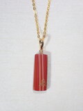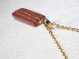 朱系統の漆を 200回塗り重ねた板を切り出して作った素材に蒔絵をしたペンダントです。