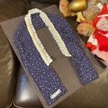 【着物 リメイク 重ね衿 伊達襟|パール&フリル|和洋折衷・レトロモダンデザイン|群青に近い深紺の夜空に、ほろりと舞い落ちる雪の粒。 E-71】