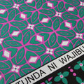 カンガ|マゼンタ × グリーン アラベスク アフリカ布 アフリカンプリント