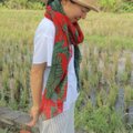 ストールを広げると、半分にのみ深いレッドが効いています。