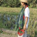 LAST1 ・シルクレーヨンスカーフ「稲」オイシイネ!AMONGさまのスカーフどれも素敵なのでどの柄にしようか迷いましたが、この稲の柄にしました。首に巻いてみたところ3色が絶妙のバランスで入っていてオシャレな装いに見えます。ネイビーと黄色も良い色ですが、意外とミルクコーヒーのような茶色?がお気に入りです。