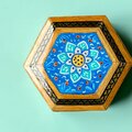 ペルシャの象嵌細工(寄木細工)小箱 宝石箱 六角形 ミニサイズ【KHA-226】