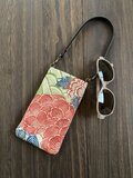 落ち着いた色合いの琉球型染めのような牡丹や菊が描かれているメガネケースです。