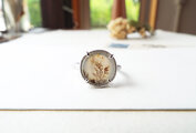 樹木のように見えるのが特徴の「デンドリティックアゲート」を、「身に着ける植物標本」のイメージでリングにしました。