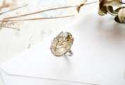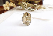 樹木のように見えるのが特徴の「デンドリティッククォーツ」を、「身に着ける植物標本」のイメージでリングにしました。
