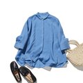 暑い季節もおしゃれと快適さを両立 リネンテンセルブラウス 9分袖ブラウス 青 250802-3