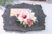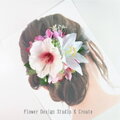 ハイビスカスと白い百合の髪飾りです。