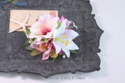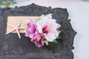 ホワイトピンクのハイビスカスとユリのヘアクリップ 髪飾り 浴衣 フラガール 夏 ダンス フラガール フラダンス ハイビスカス