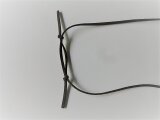 穴にブラックの革紐を結び、最長80センチまで長さを調整