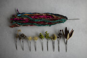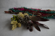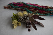 インドの伝統的衣装のサリーを裂いたリボンとお花を合わせました