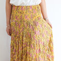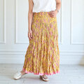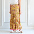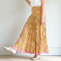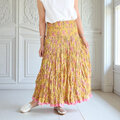 ブロックプリントクリンクルコットンスカート【イエロー】