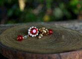 鮮やかな赤いラインストーンにキラキラのラインストーンが美しいパーツに、6ミリの赤いカーネリアンを合わせました。