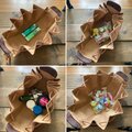 シルエットもわりと自由がききますのでギャザーを深めに絞ると細くもなり小物入れオヤツ入れコスメポーチなどお好みの使い方でお楽しみいただけます。