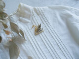 秋冬のジャケットやコートの襟もとにもつけられる小ぶりなサイズです。