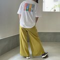 残暑に秋色♪【接触冷感】サイドスリット イージーワイドパンツ 4色展開【イエロー】『2025リデザイン』