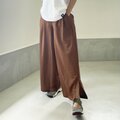 裾のスリットやウエスト紐のゴールドチップが特徴的なデザイン。