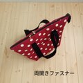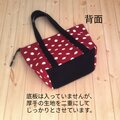 ファスナー付A4対応☆大きめトートバッグ 肩掛け 差し色 レッド水玉/ドット×黒帆布 974