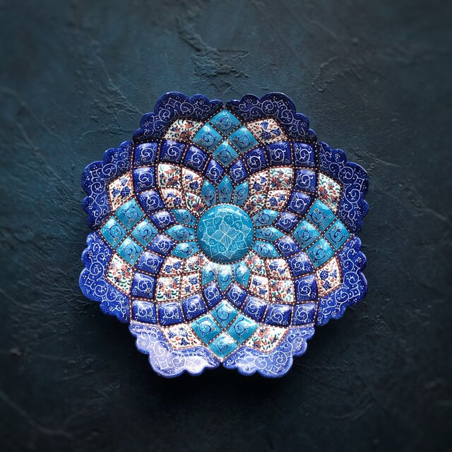 ペルシャのエナメル皿(ミーナーカーリー)飾り皿 Φ17cm 壁飾り【MINA KARI 015-002】