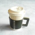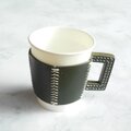 個人的に毎日紙コップを使うのですが、使いやすさと楽しい見た目を兼ね備えたスリーブが欲しくて作りました。アトリエ用に作ったものですが、お客様にコーヒーを出す際に使ったところ「欲しい」と仰って頂けたのをきっかけに販売することにいたしました。