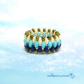 チェコツインビーズを丁寧に編み上げた、トリコロールカラーのリングです。