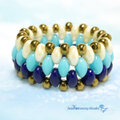 チェコツインビーズ アイボリー、 オペークライトブルー、オペークダークブルー