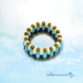 チェコツインビーズを丁寧に編み上げた、トリコロールカラーのリングです。