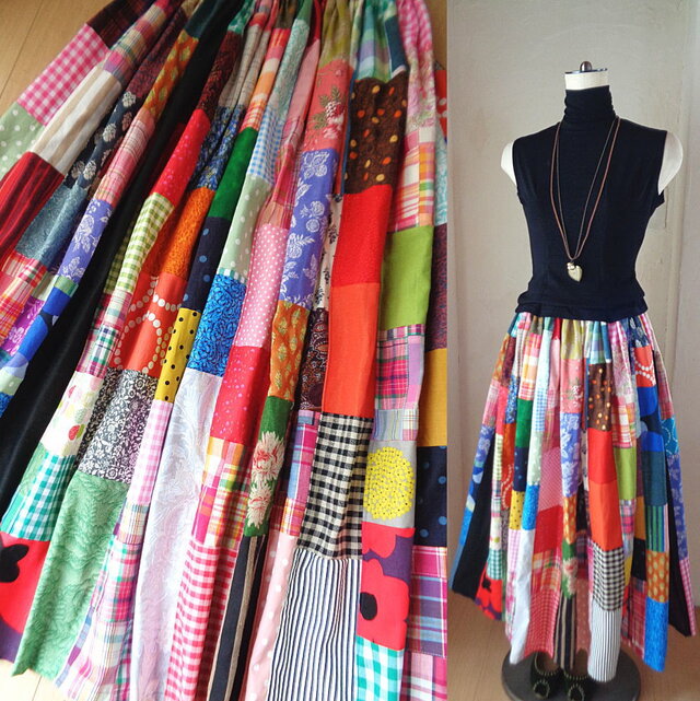 【絵画のようなパッチワークスカート】