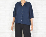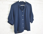 ふんわりと柔らかく、思わず触れたくなるような心地よい肌触りのコットンダブルガーゼで仕立てた、シンプルな紺色のスキッパーブラウスです。