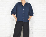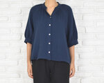 シンプルなコットンダブルガーゼふんわり袖のスキッパーブラウス ネイビー 紺
