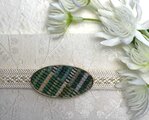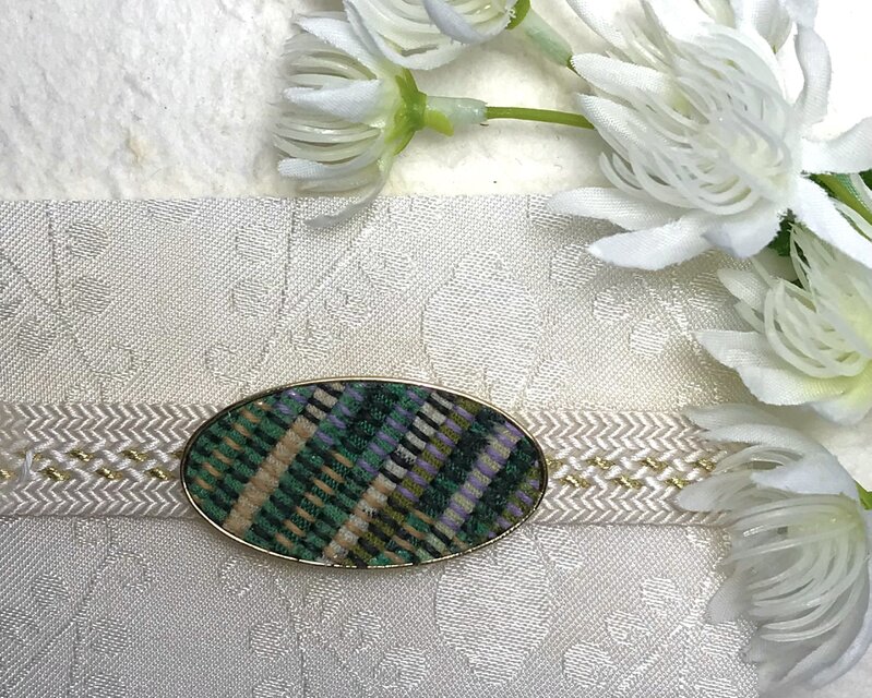 裂き織りの楕円型の帯留め(緑色)