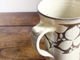 ビアマグ全体に白い化粧泥を掛けエンレイソウを描いてから余分な化粧泥を削り落として図柄だけを残しています。