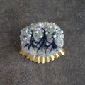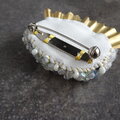最後に、羊毛画を守る額縁の役割として薄く波打つ模様を施した真鍮を添えています。控えめに輝く真鍮の縁飾りがブローチを可憐に仕上げています。