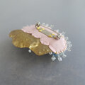最後に、羊毛画を守る額縁の役割として薄く波打つ模様を施した真鍮を添えています。控えめに輝く真鍮の縁飾りがブローチを可憐に仕上げています。