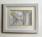 アンティーク風に加工されたおしゃれな白い額に入っています。マットはクリーム色です。