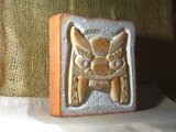 素材はシナ材、大きさは15×15cmです。アクリル絵具使用。